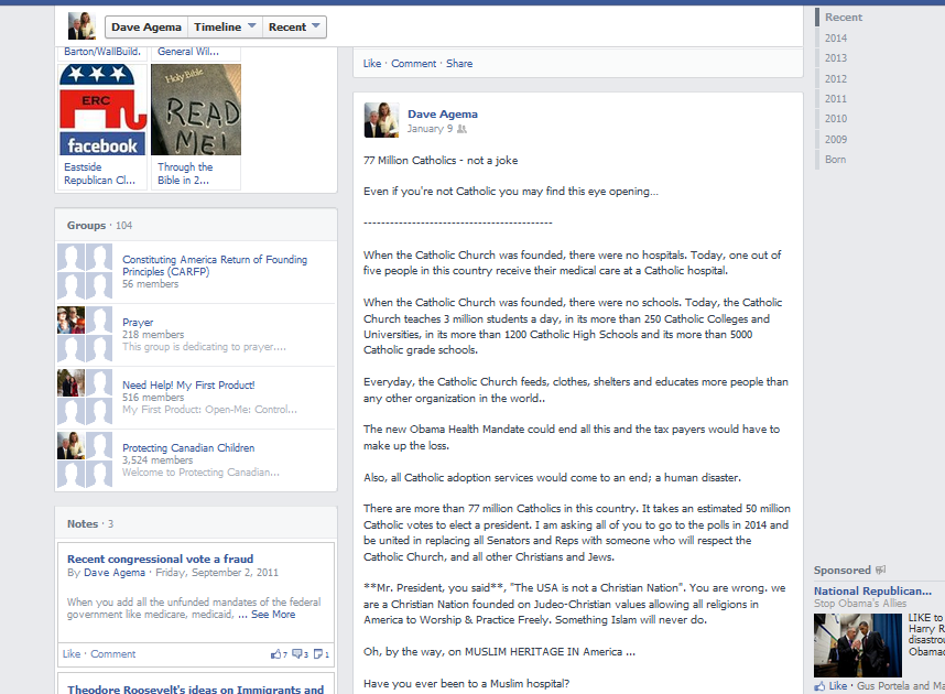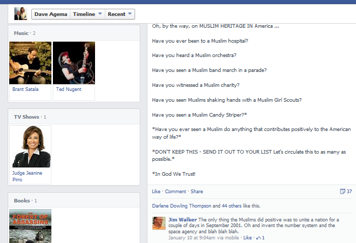 He offers up this little gem to please the right-wingers: “Have you ever seen a Muslim do anything that contributes positively toward the American way of life?”