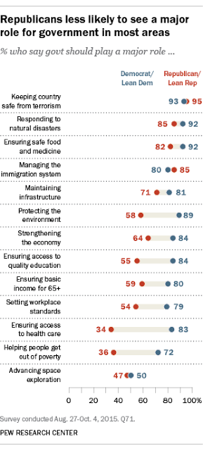 which Democrats overwhelmingly support a governmental role and the GOP does not,