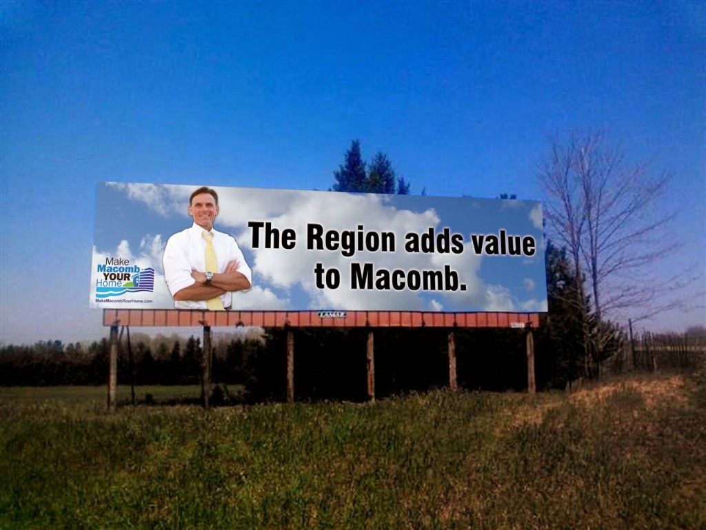 that said, “Macomb – strong on defense,” and “Macomb – making it regional.”