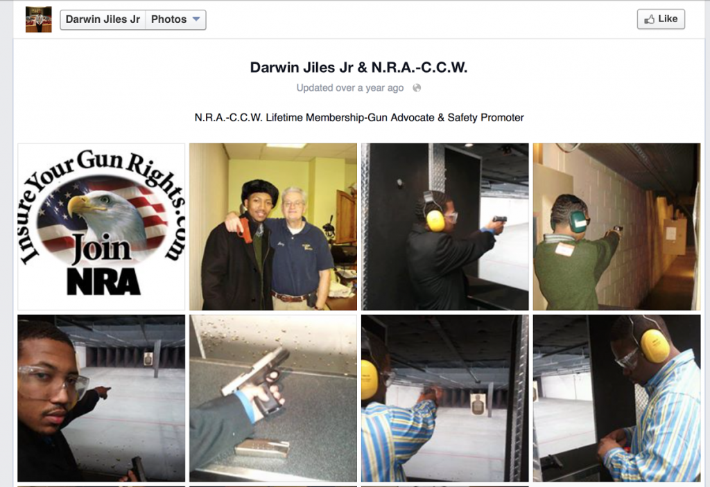 * Jiles recently posted numerous photos on his Facebook page showing him firing guns (above)  with the label, “N.R.A.-C.C.W. Lifetime Membership-Gun Advocate & Safety Promoter.” In fact, he was not a lifetime CCW holder, but he was charged with violating the CCW law.