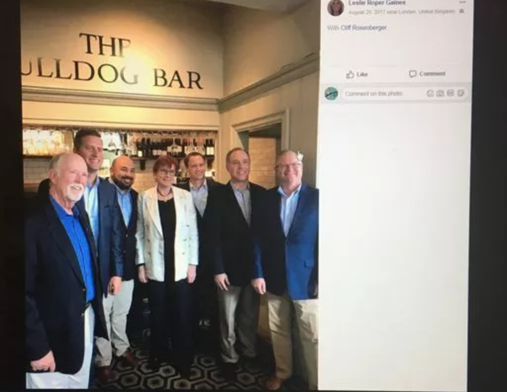In this Facebook screenshot, House Speaker Tom Leonard (third from the right) is shown while taking part in a junket that went to London.