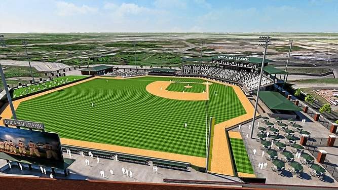 The elaborate plan calls for a local three-team league to play at the multi-million dollar stadium, which will be built on the outskirts of downtown Utica, with each team playing 48 games a year. A fourth team will be added in the future.