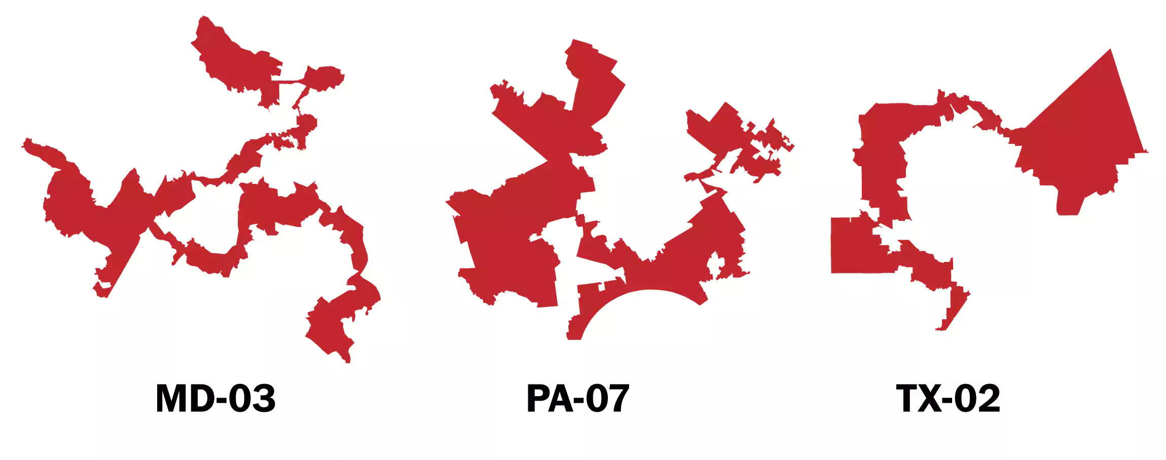 The blatantly partisan districts demonstrated below are among the most infamous, and it should be pointed out that Maryland’s 3rd District was the product of Democratic shenanigans.