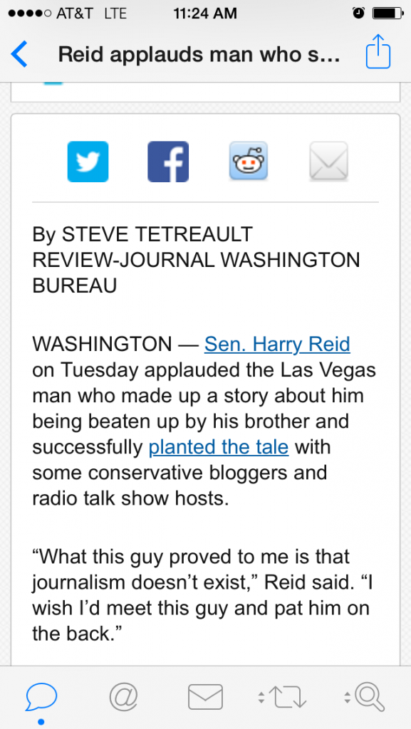 bathroom at home, the conservative crowd bought the juicy story that Reid was