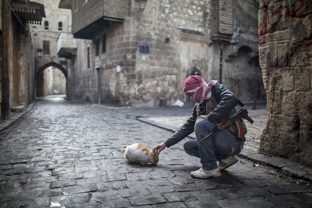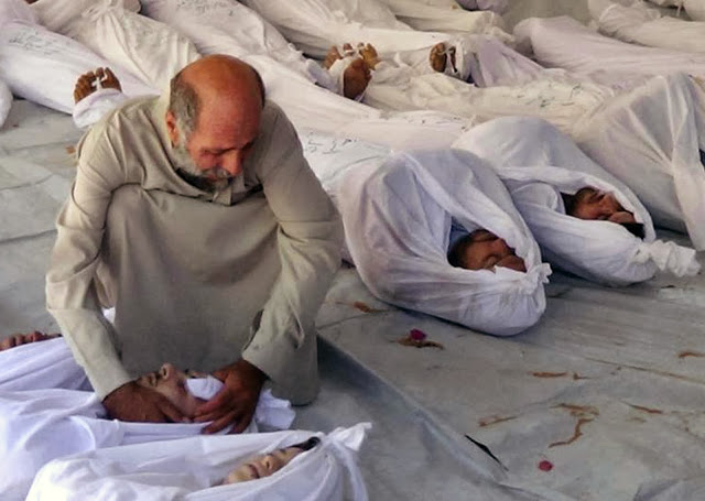 A Syrian man mourning over a dead body after a monstrous poison gas attack fired by regime forces in