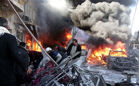 | Destruction caused by barrel bombs in 2014 in Aleppo, Syria. |