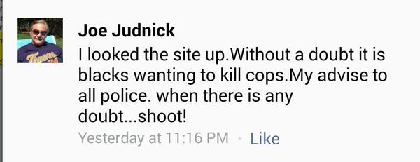 “Sterling Heights Council Candidate Joe Judnick and key Smith ally seems to urge police to kill all blacks.”